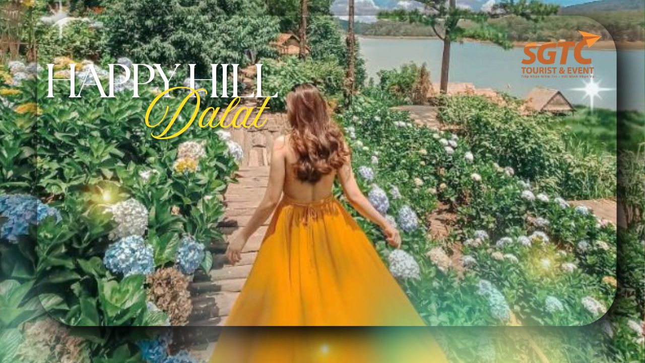 15h00: Xe đưa đoàn đến tham quan Khu du lịch Happy Hill Đà Lạt, một điểm check-in nổi tiếng nép mình bên hồ Tuyền Lâm thơ mộng. Giữa không gian xanh mát của rừng thông bạt ngàn, Happy Hill hiện lên như một bức tranh đầy màu sắc với những tiểu cảnh độc đáo, vườn hoa rực rỡ và khung cảnh thiên nhiên yên bình. Từ trên cao nhìn xuống, mặt hồ phẳng lặng soi bóng mây trời, tạo nên khung cảnh vừa lãng mạn vừa nên thơ đậm chất Đà Lạt mộng mơ.