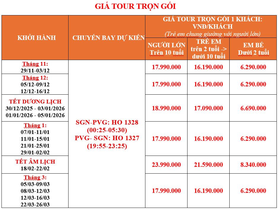 CHƯƠNG TRÌNH TOUR CHI TIẾT: