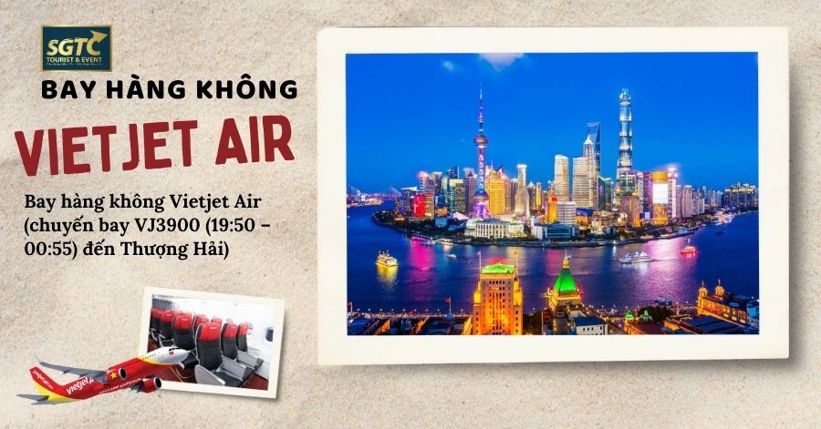 16:30 Quý khách tập trung tại sân bay quốc tế Tân Sơn Nhất, HDV Tour Thượng Hải – Bắc Kinh – Hàng Châu – Ô Trấn Của Du Lịch Sài Gòn Thành Công đón quý khách, làm thủ tục xuất cảnh và đáp chuyến bay VJ3900 (19:50 – 00:55) đến Thượng Hải.